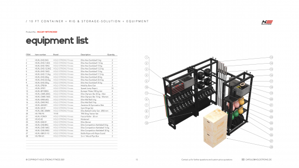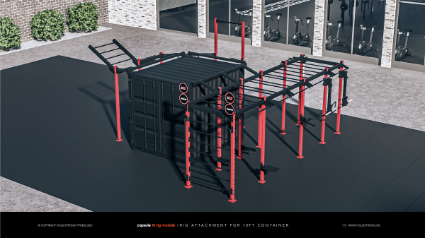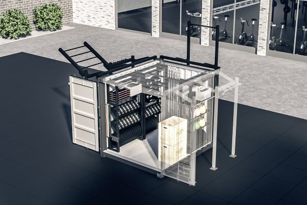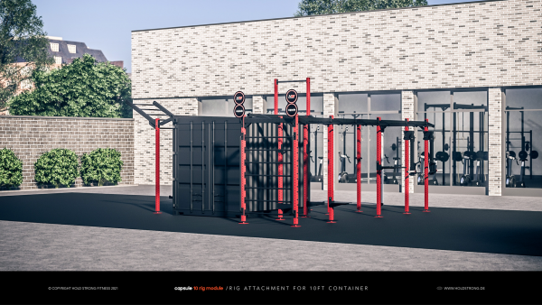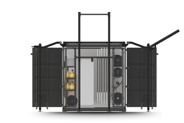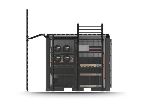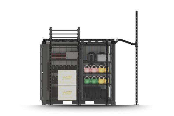 10ft HOLD STRONG Fitness Outdoor Container – Multifunktionales Outdoor Trainingssystem inkl. Regallösung und Equipment-Paket