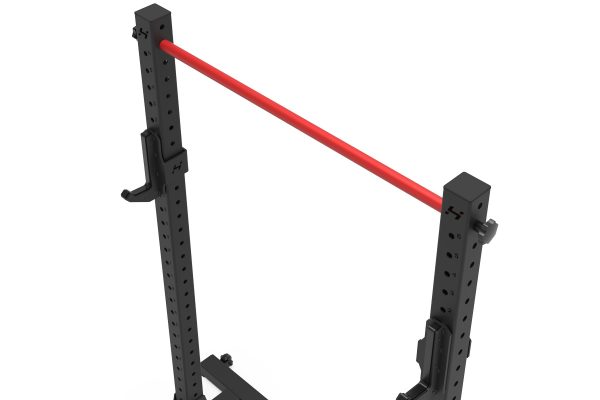 Die Squat Stands sind in einer zweiten Ausführung mit passender Klimmzugstange verfügbar, die durch Drehknöpfe einfach in den Hantelständer integriert werden kann – die perfekte Alternative vor allem für Homegym-Nutzer, denen keine tragende Wand zur Verfügung steht oder die keine Bohrungen durchführen dürfen.