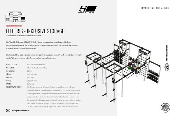 | Sonderwünsche | Für Ergänzungen und Sonderfarben kontaktiere unser Team. Die Konstruktion kann erweitert und mit HOLD STRONG Equipment wie Langhanteln, Langhantelscheiben, Kettlebells, Wall Balls uvm. ausgestattet werden. |
