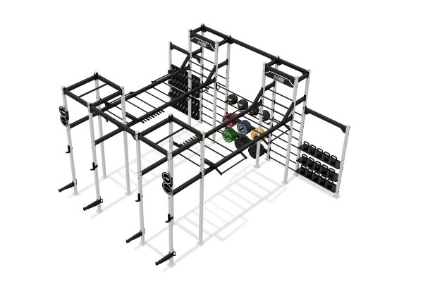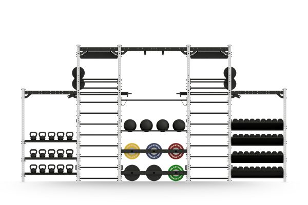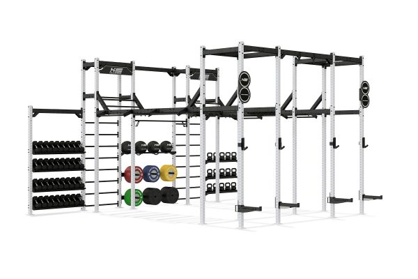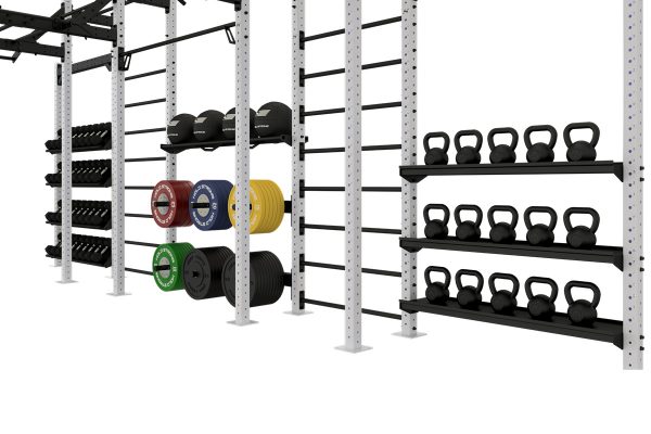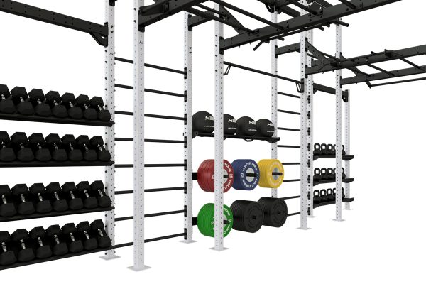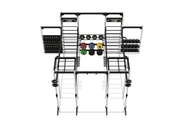 Die Athletik Bridge von HOLD STRONG Fitness überzeugt durch viele verschiedene Trainingsstationen und ein Storage-System zur Aufbewahrung von Kurzhanteln, Kettlebells, Hantelscheiben und Gymnastikbällen.
