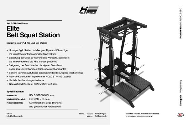 HOLD STRONG Fitness Elite Belt Squat Station / Pull Up und Dip Station