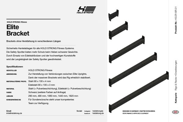 | Anwendung | Zur Herstellung von Verbindungen zwischen Elite Uprights. Dank der massiven Brackets wird das Rig erheblich stabilisert. |