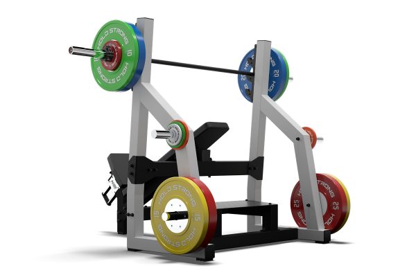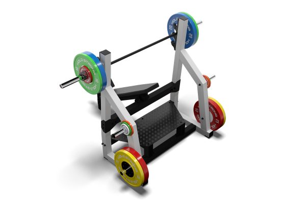 Mit integrierter geriffelter Spotter Standfläche, Scheibenaufnahmen und vielen weiteren Details für ein professionelles Krafttraining.