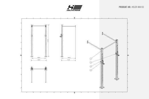 | Montage | Die Pfosten (Uprights) und die Klimmzugstangen müssen im Boden bzw. Wand befestigt werden. Sollte eine Verankerung im Boden nicht möglich sein (Fußbodenheizung / hochwertiger Boden) kann eine Befestigung mit zwei zusätzlichen Klimmzugstangen unten am Upright realisiert werden. Für Fragen kontaktiere unser Team. |